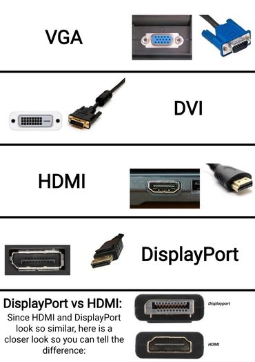 If you use an external monitor (aka “screen”) for your computer, whether it’s a desktop or laptop, we need to ensure that we have the correct adapter (aka “plug”) to connect to your new computer. Use the handy attached chart to determine what plug type(s) your monitor has, and let us know when you come in to pick up your computer. This way, we can ensure we send you home with the correct cables! Without this info, we have NO way of knowing how to hook your screen up to your computer, so don’t forget to bring this info with you!